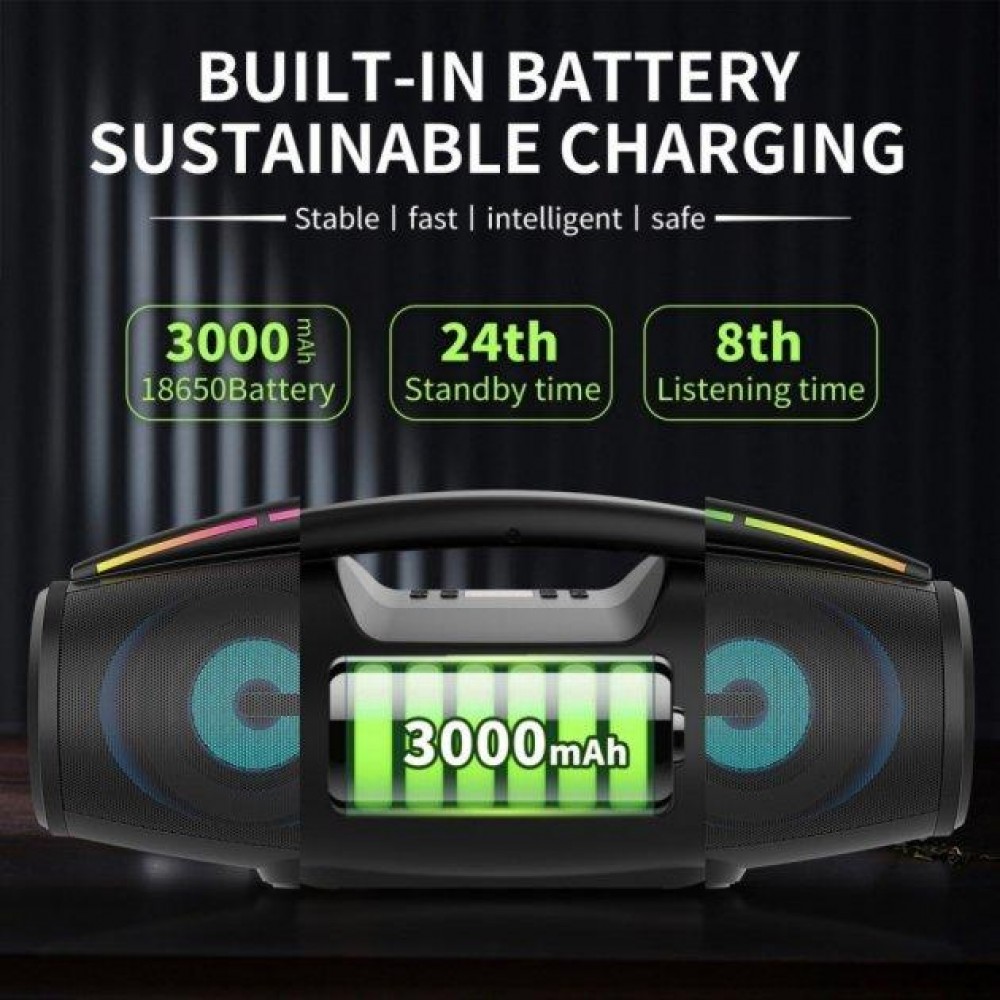 Портативная bluetooth колонка BKK B100 - имеет качественное, громкое и приятное звучание. Приятный внешний вид и полоску RGB LED подсветки (есть кнопка включения и отключения) позволяет не только радоваться любимой музыкой, но и получать эстетическое удовольствие от внешнего вида.