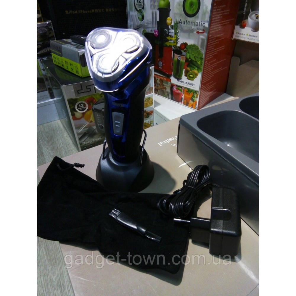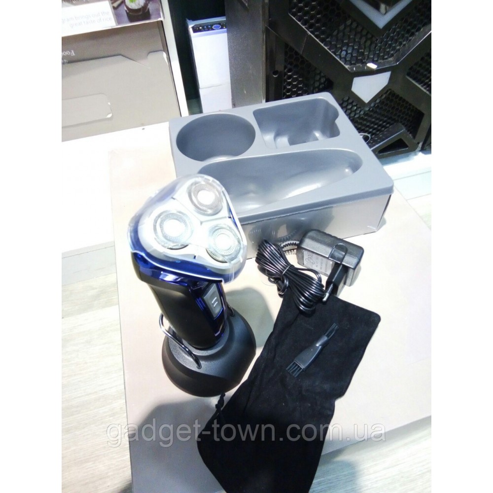 Очень лёгкая и удобная в использовании электробритва. Тройное лезвие из нержавеющей стали. Беспроводная, время зарядки-8 часов.