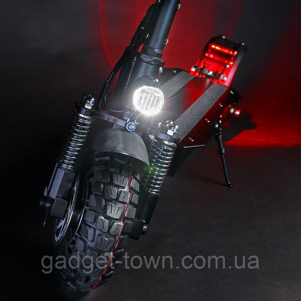 Внедорожный электросамокат, который создан, чтобы покорять любые дороги и проезжать даже там, где дорог нет. Он оснащен двумя электромоторами, которые позволяют ему разгоняться до внушительных 60 км/ч, большими колесами с особыми протекторами и амортизационной подвеской для комфортной езды. Все это дополняет слегка агрессивный дизайн, точно отражающий брутальный характер этого самоката.