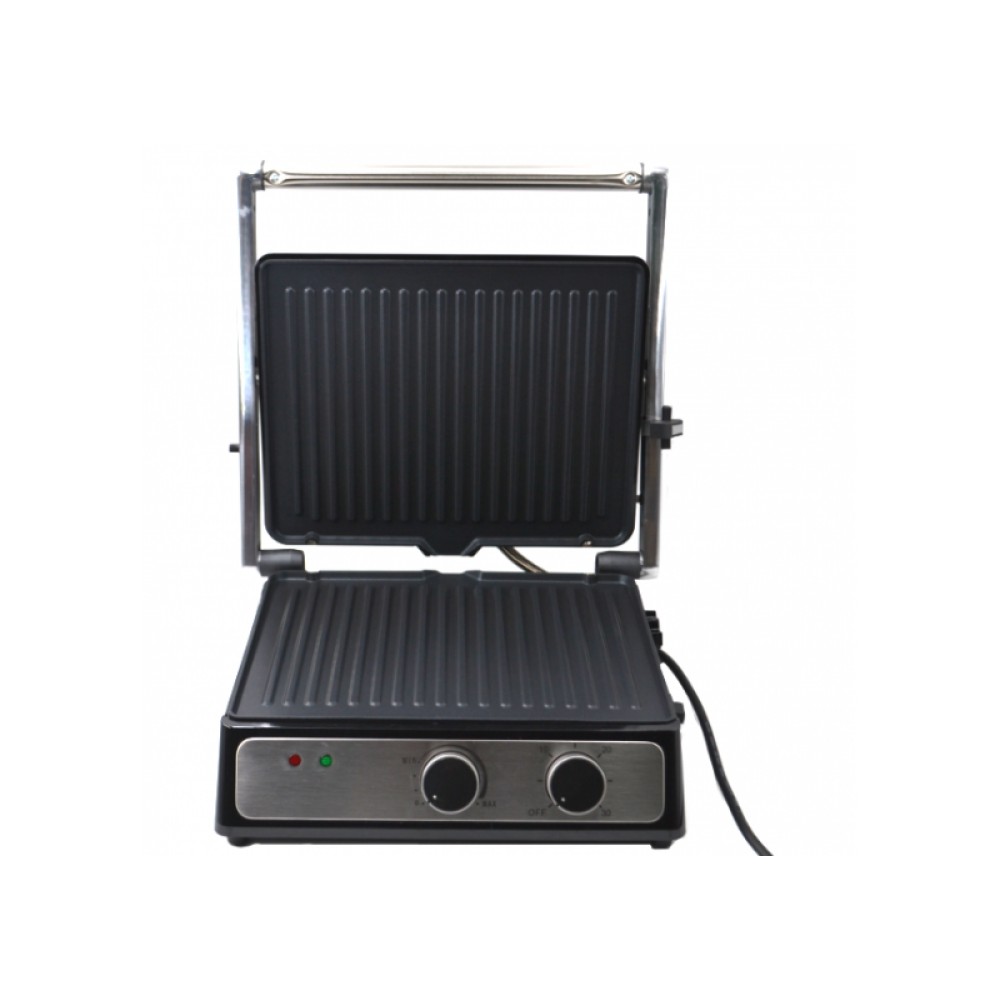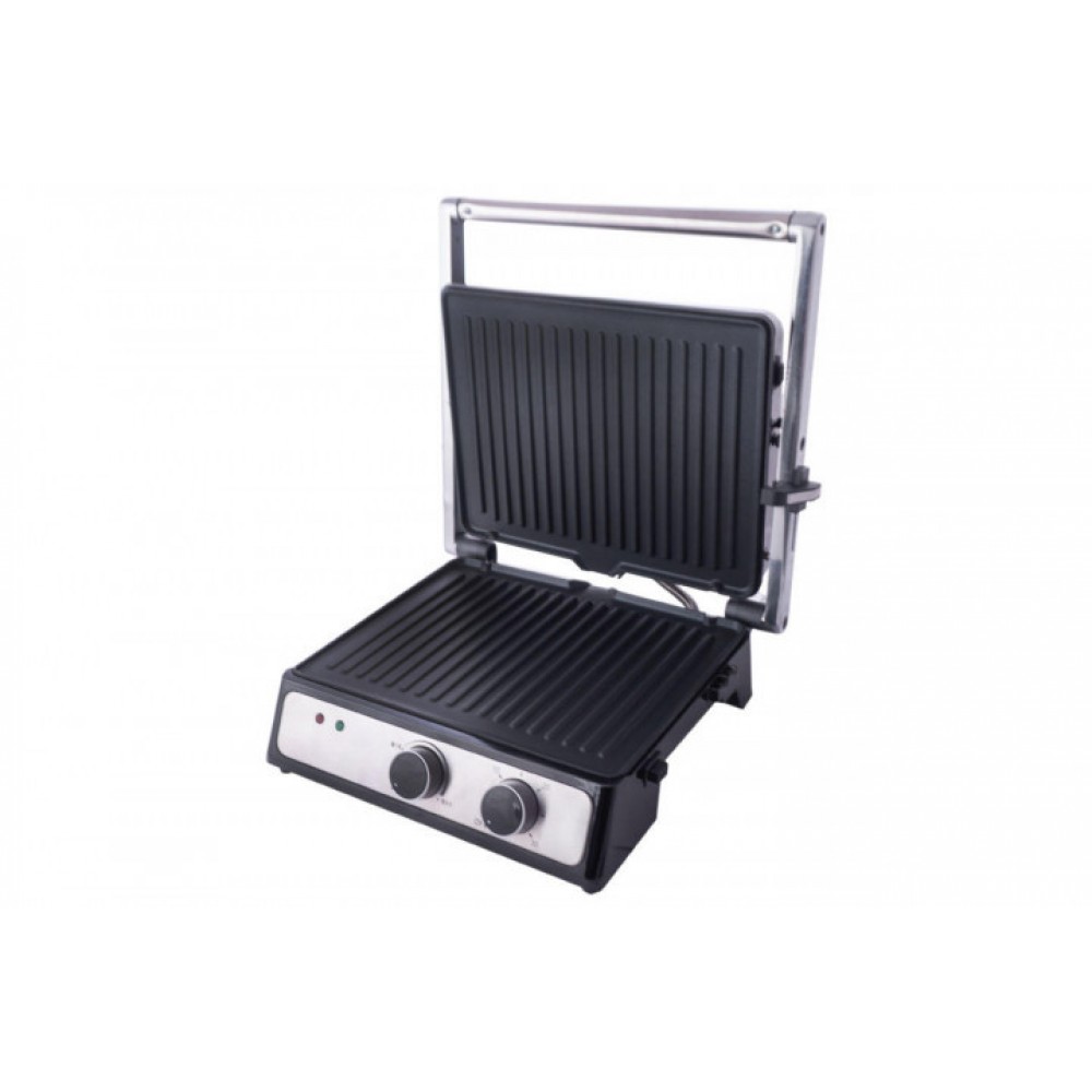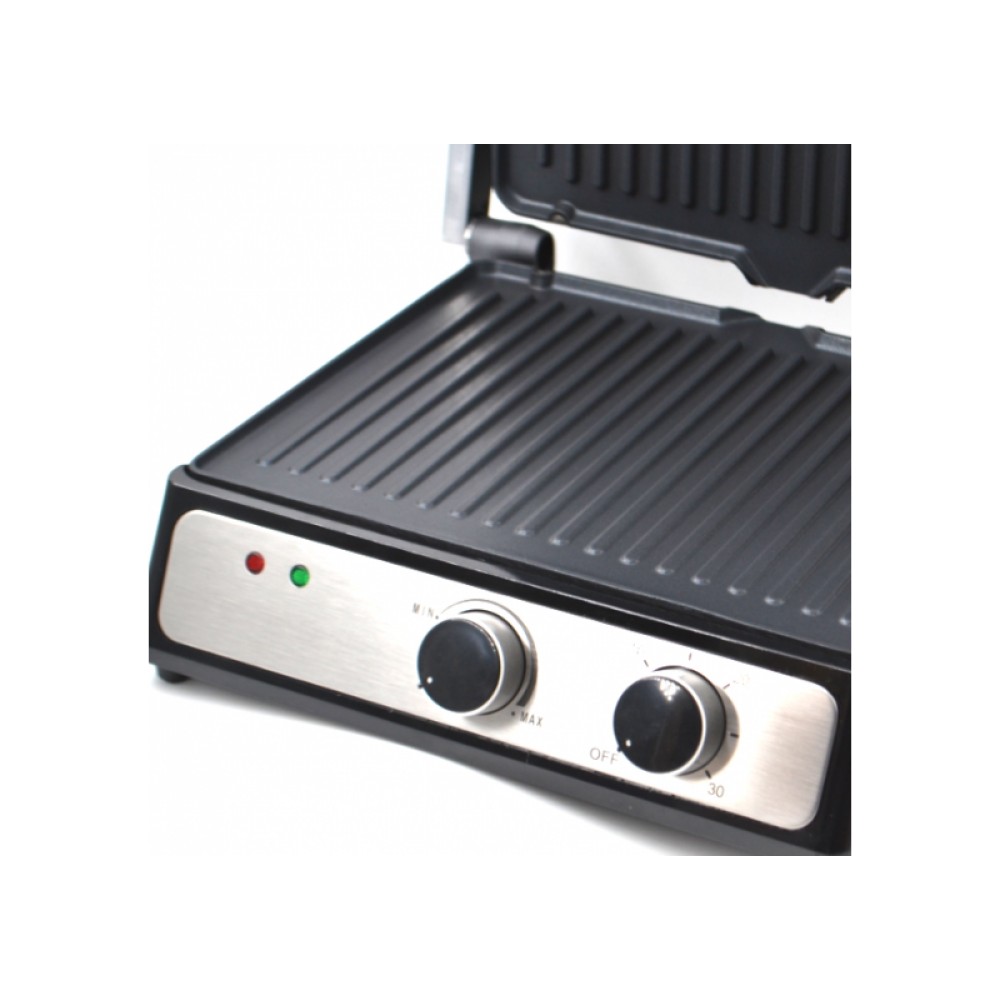 Антипригарное покрытие пластин поможет вам легко и быстро протереть ее после использования. Створки гриля раскрываются на 180 градусов, что позволяет использовать их как поверхности для жарки одновременно. Есть специальный поддон, куда будет стекать весь сок от продуктов. Плавная регулировка температуры позволит вам подобрать оптимальный режим для любого продукта, а таймер поможет Вам не испортить Ваши кулинарные шедевры если вы отвлечетесь.