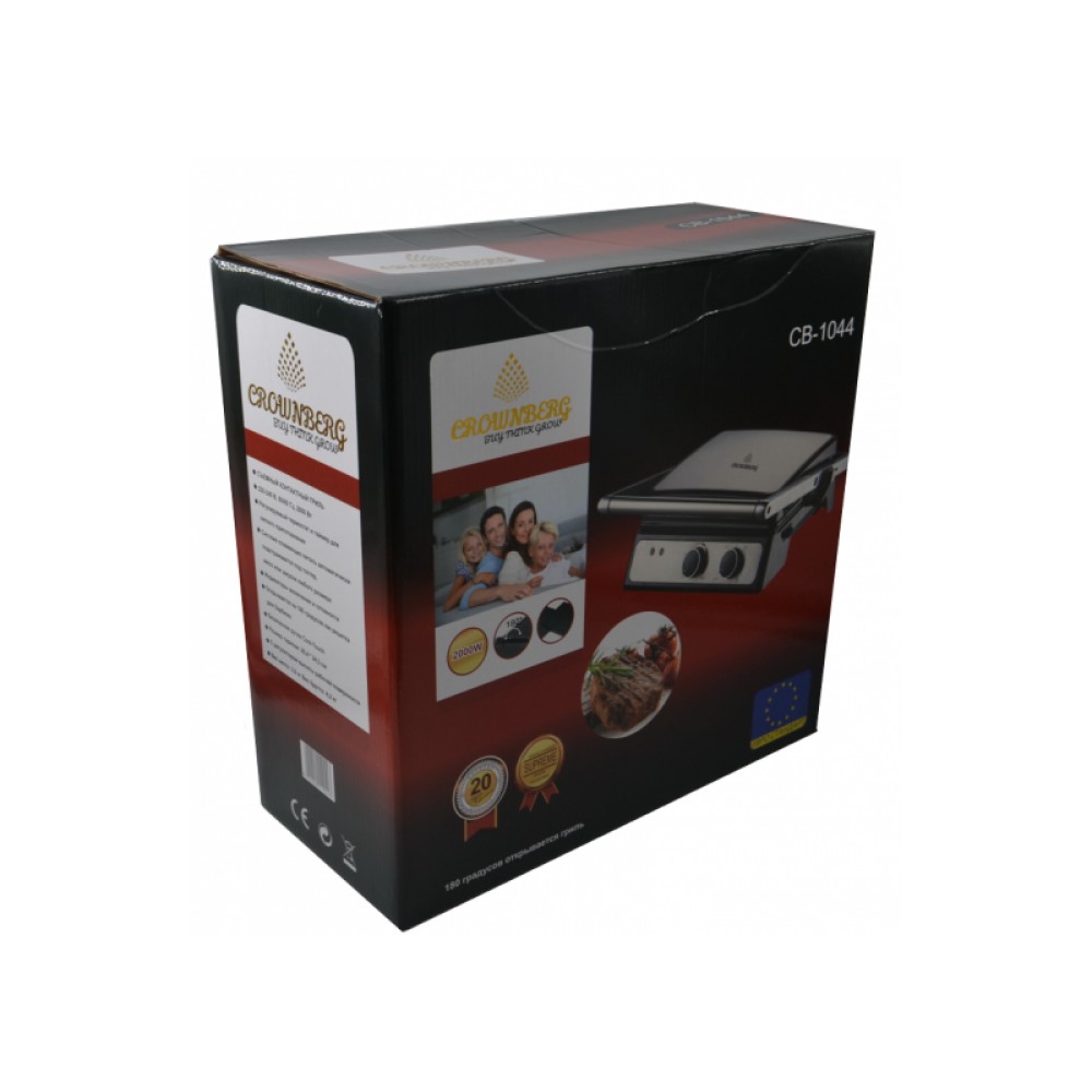 ПРЕИМУЩЕСТВА Электрического гриля Crownberg CB-1044 2000 Вт Серебристый: