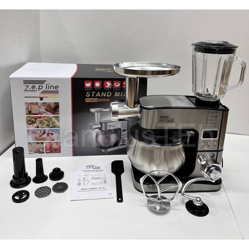 Многофункциональный кухонный комбайн Zepline ZP-135 4200 Вт, миксер 6 л, блендер 1,5 л, мощная мясорубка, миксер с дисплеем