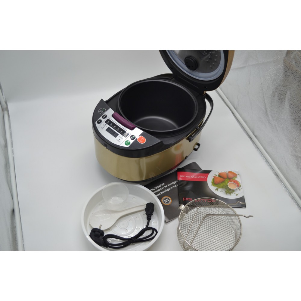 Принцип работы: внутри расположена емкость (специальная “кастрюля”) с продуктами, которые поддаются термической обработке в различных режимах. В мультиварке нагрев происходит не только снизу, но и по всему периметру емкости, в которой находятся продукты. Это обеспечивает равномерное приготовление пищи. В добавок к оптимальному всестороннему нагреву в мультиварке находятся датчики, которые контролируют весь процесс приготовления. Датчики следят за поддержанием постоянной температуры, соответствующей выбранному режиму, и за давлением — чтобы не случилось вскипания и выкипания пищи. Также датчики определяют вес продуктов для расчета времени приготовления и степени нагрева. Стоит обратить внимание, что емкость сделана из материалов с высокой теплопроводностью для оптимального и равномерного нагрева. За всем происходящим следит микропроцессор, в который заложены программы приготовления пищи.