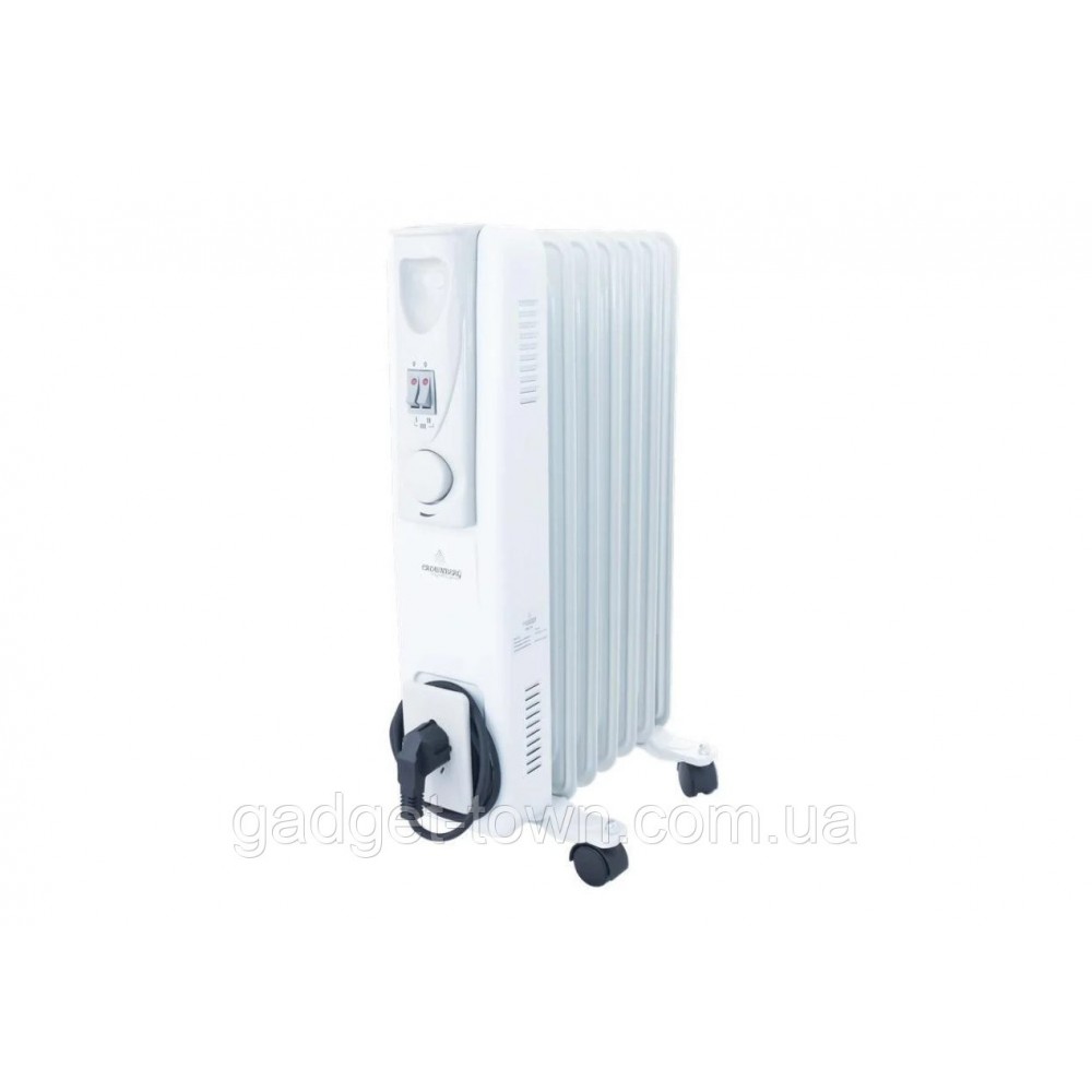 Масляный обогреватель «Crownberg» ― имеет герметичный биметаллический корпус наполненный минеральным маслом, которое нагревается с помощью электрической спирали.