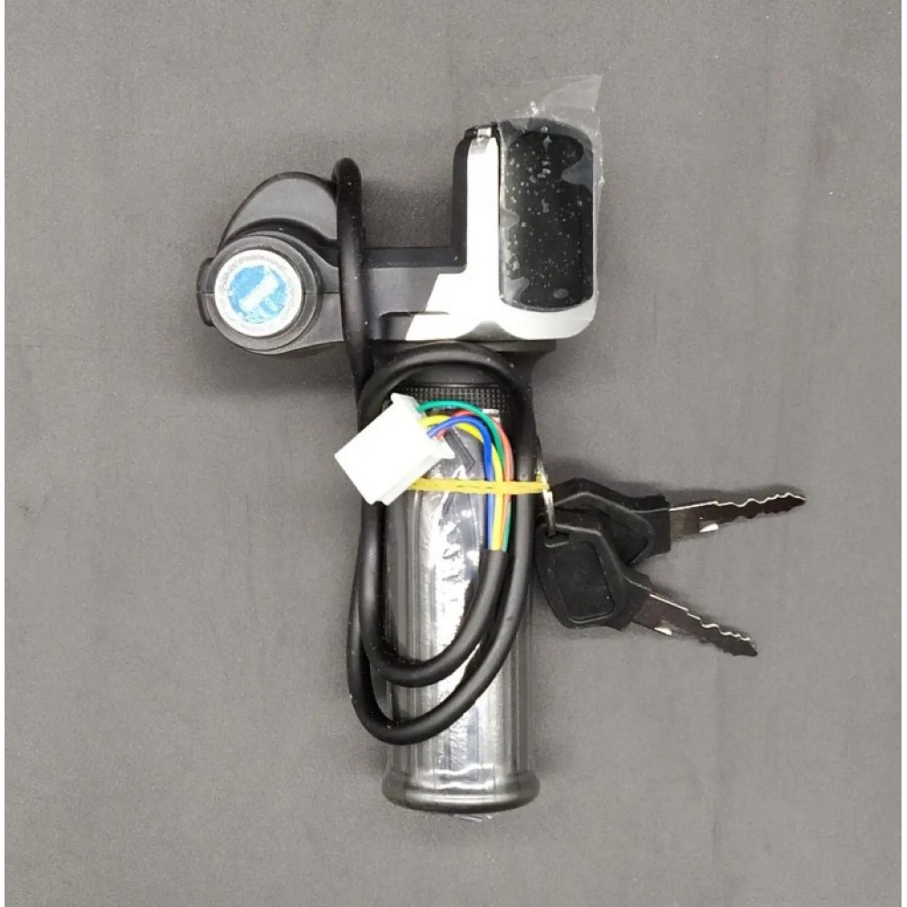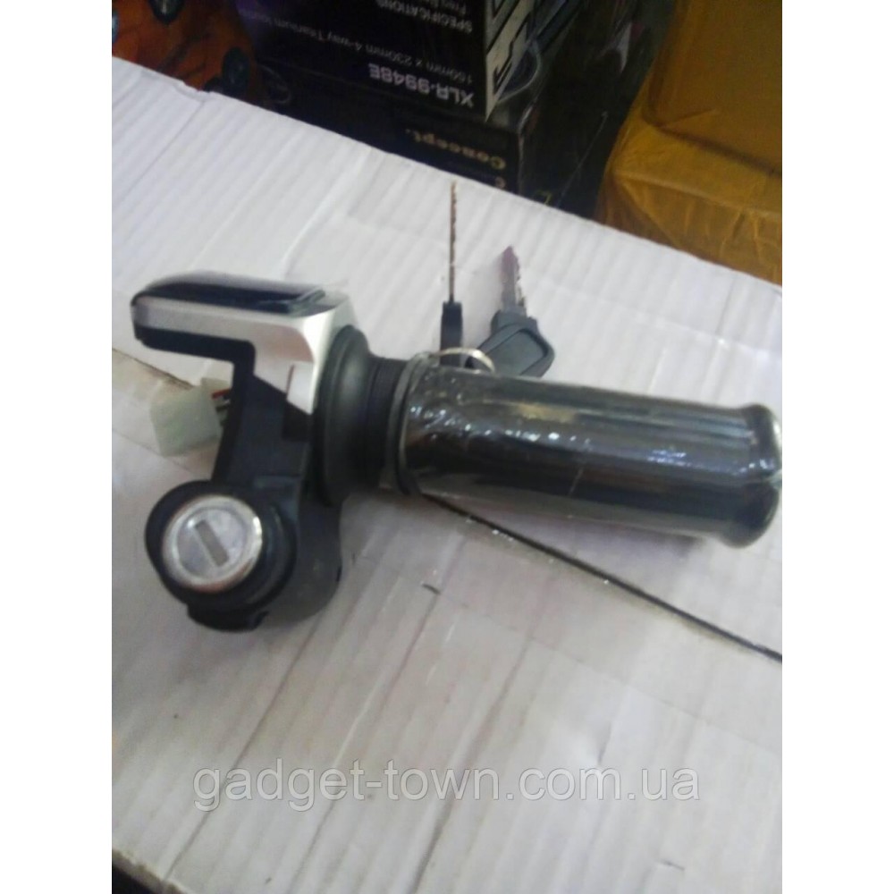 Ручка газа с самым красивым дизайном, объединяющая в одном блоке акселератор, светодиодный индикатор уровня зарядки аккумулятора и замок зажигания – удобна и функциональна. Вращаемая часть акселератора расположена по всей длине рукоятки – это классическая модель ручки газа. Она выполнена из качественного ударопрочного пластика на металлическом каркасе.