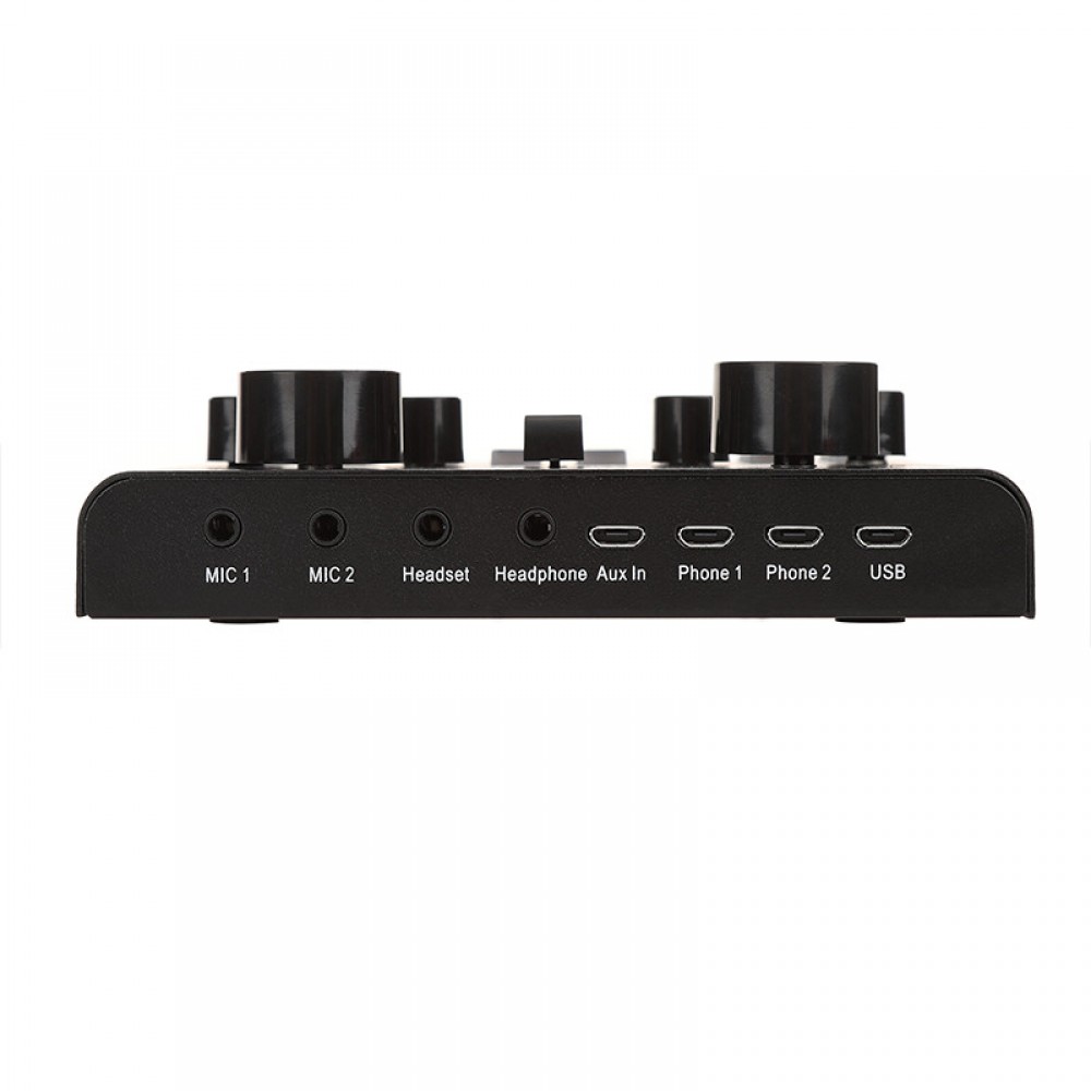 Звуковая карта имеет 16 звуковых эффектов и 8 режимов. Регулировка мощности режимов осуществляется при помощи 2 поворотных кнопок. Два высококачественных микрофонных канала работают как с обычными динамическими микрофонами, так и со студийными конденсаторными.