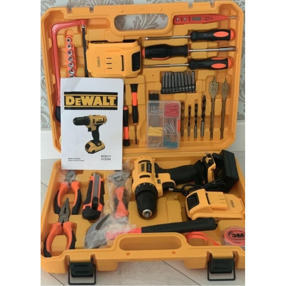 Аккумуляторный Шуруповерт DeWALT DCD791 (24V 5A/h Li-Ion) ударный с большим набором инструментов в кейсе