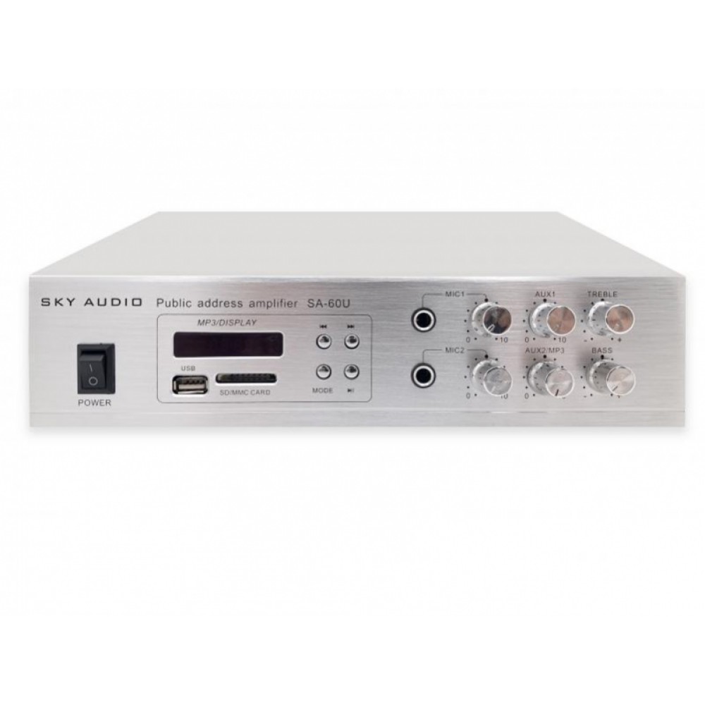 Оформить заказТрансляционный усилитель Sky Sound SA-60U мощностью 60 Вт, предназначен для создания небольших систем трансляции и озвучивания с суммарной мощностью подключаемой акустики не более 60-ти Ватт. Это могут быть небольшие торговые предприятия, кафе и рестораны, офисы, АЗС спортивные площадки и проч.