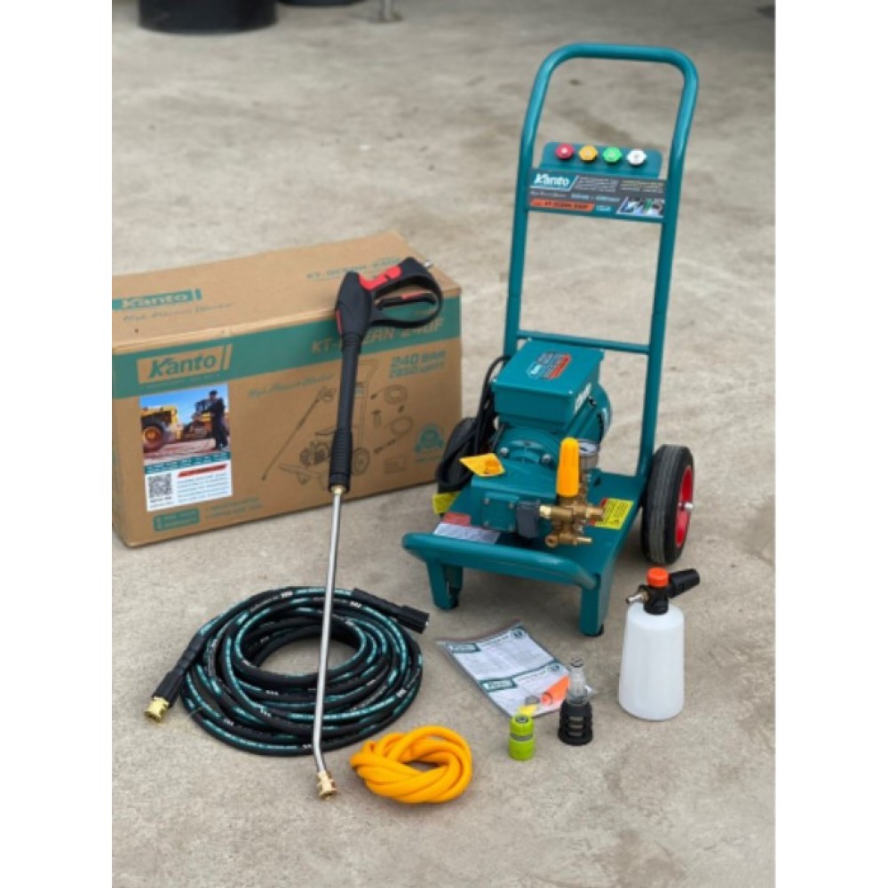 Отличается качественным исполнением с индукционным двигателем что отличает ее от конкурентов большей надежностью. Мойка способна прокачивать до 14 литров воды в минуту под давлением до 240 бар, за счет чего гарантирует качественную очистку даже сильно загрязненных поверхностей. Функция «авто-стоп» отключает двигатель и насос при отпускании клавиши пистолета.